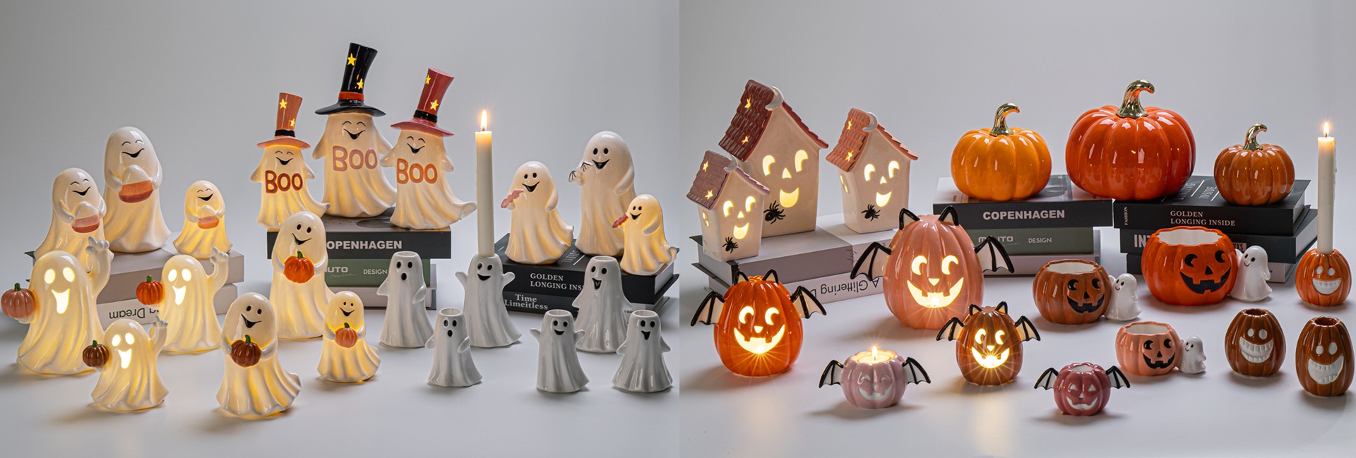 फैक्ट्री सिरेमिक भूत कद्दू मजाकिया सिरेमिक हेलोलीन सजावट के साथ