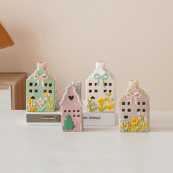 Casa in gres floreale primaverile ospita ornamenti in ceramica illuminata casa rosa dipinta a mano con Design a fiore in rilievo